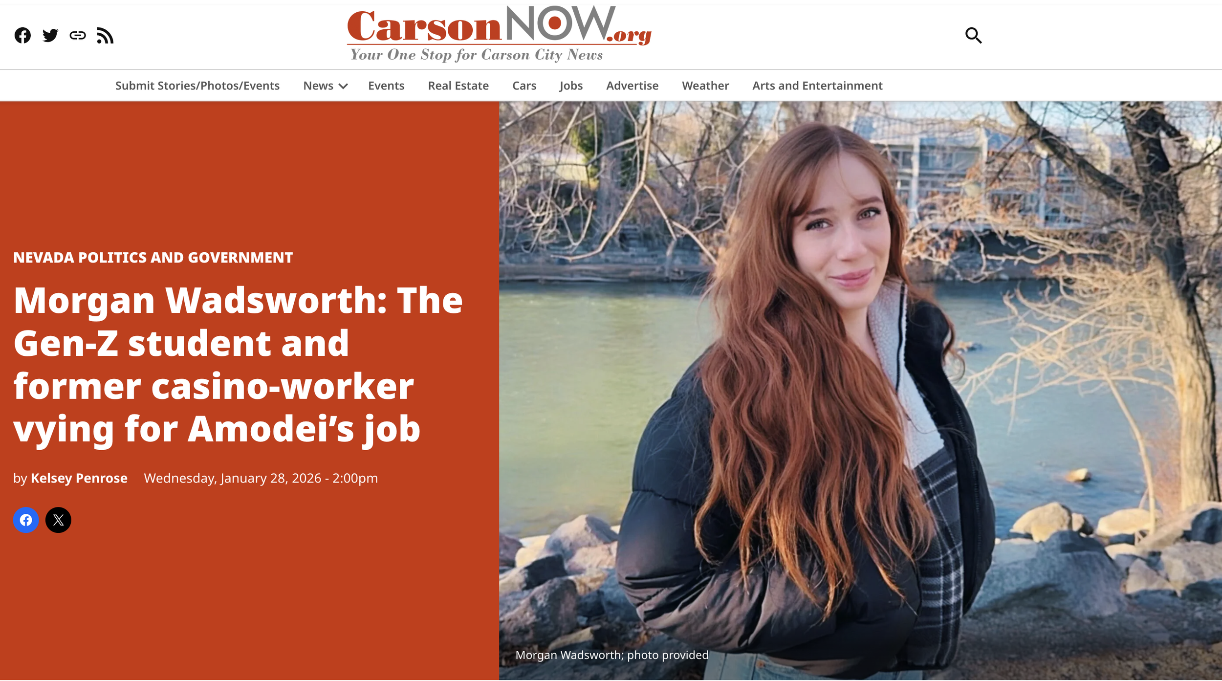 PRESS & MEDIA Morgan Wadsworth, a Gen-Zer Taking on the Establishment to Help Northern Nevada Reach Its Full Potential Our Town Reno Read Here Morgan Wadsworth: The Gen-Z Student and Former Casino-Worker Vying for Amodei’s JobCarson Now Read Here CLICK HERE FOR MEDIA INQUIRIES TAP HERE FOR MEDIA INQUIRIES